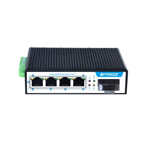Most popular & high quality 1-port 100Mbps SC Fiber + 4 port 10/100Mbps Industrial Grade PoE Switch
